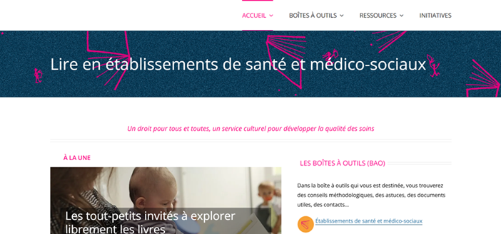 Véritable boîte à outils pour les professionnels et bénévoles du livre, de la santé et du médico-social, le site a été créé pour accompagner le développement d'une offre de lecture de qualité dans les établissements de santé et médico-sociaux.